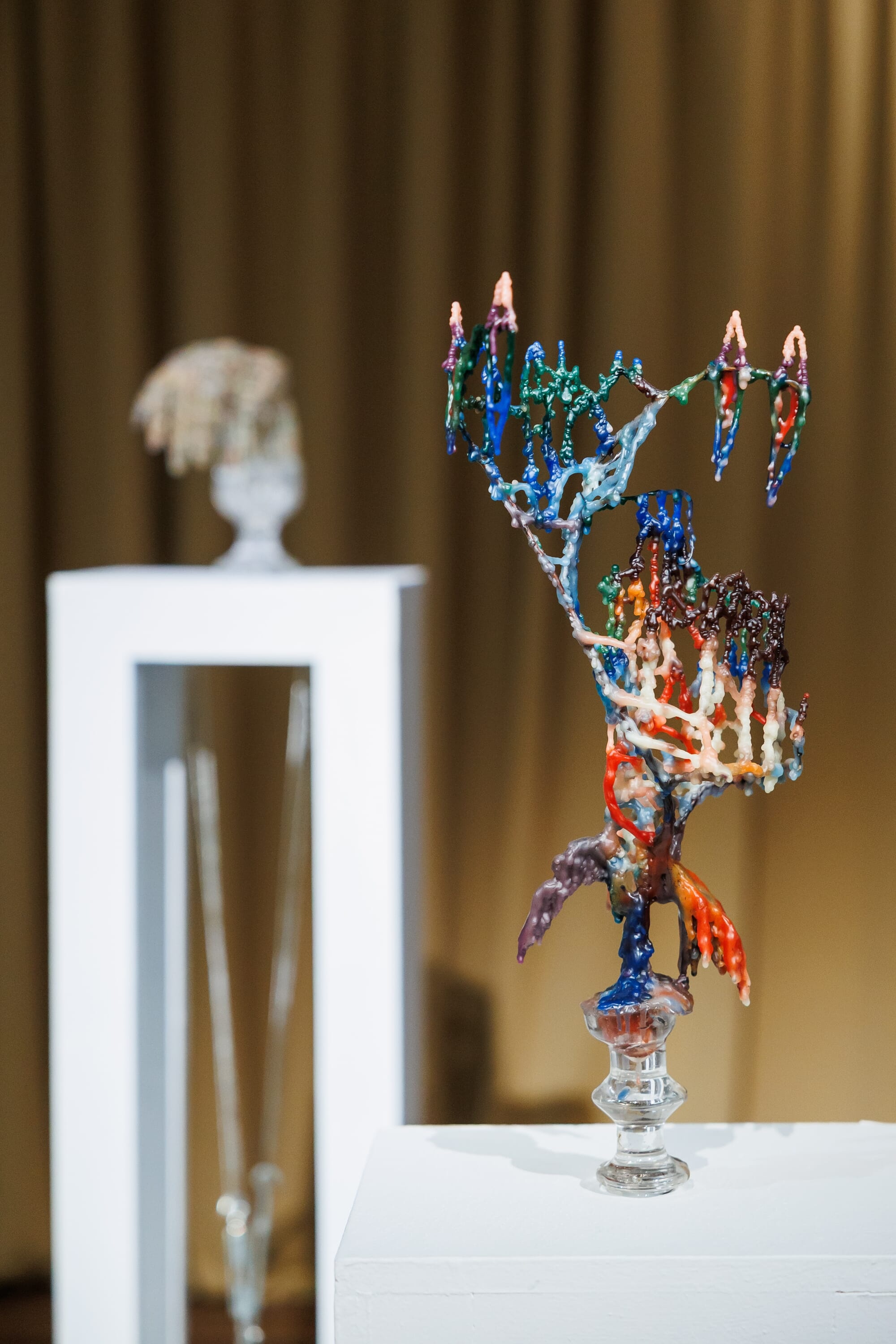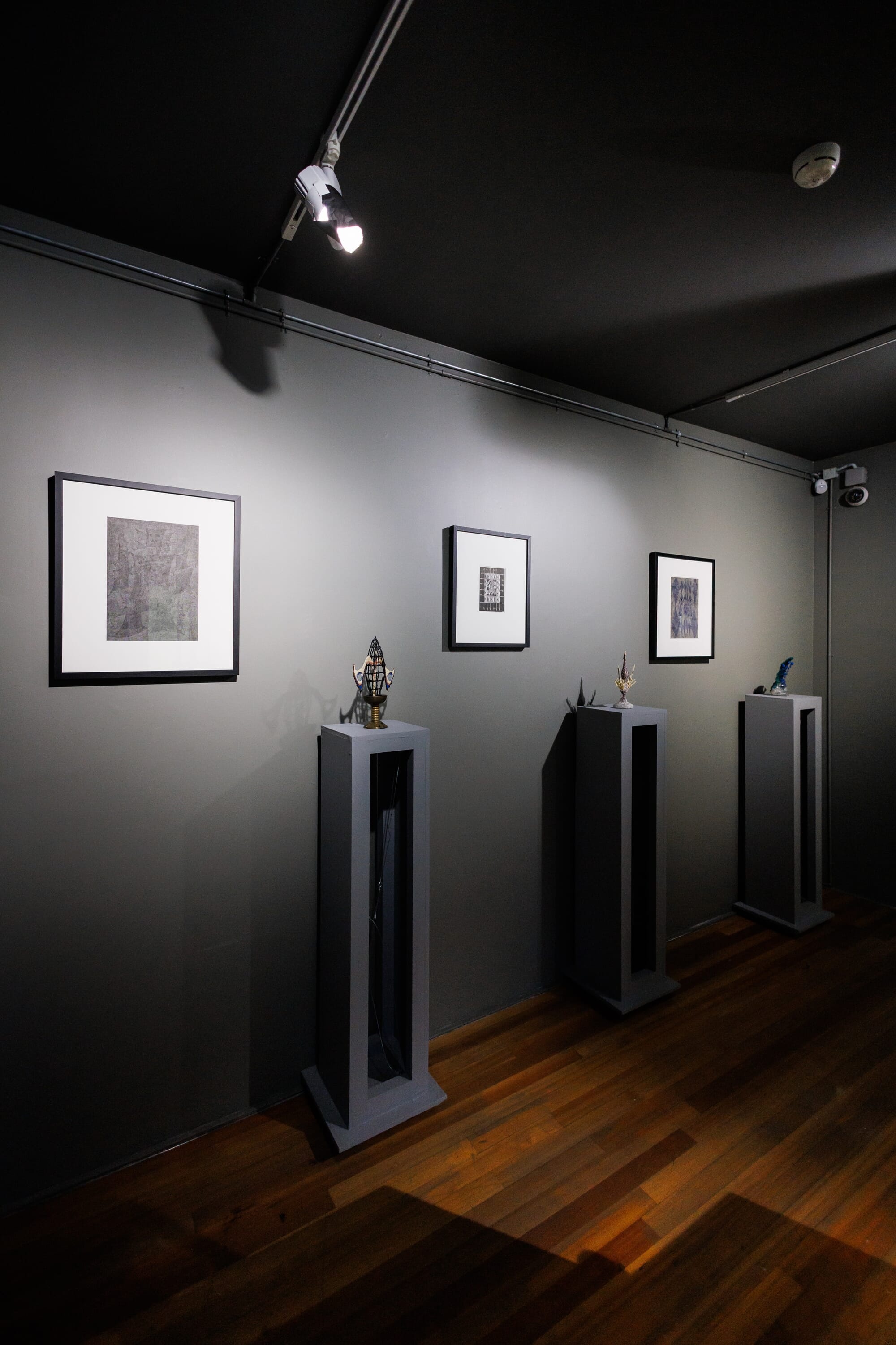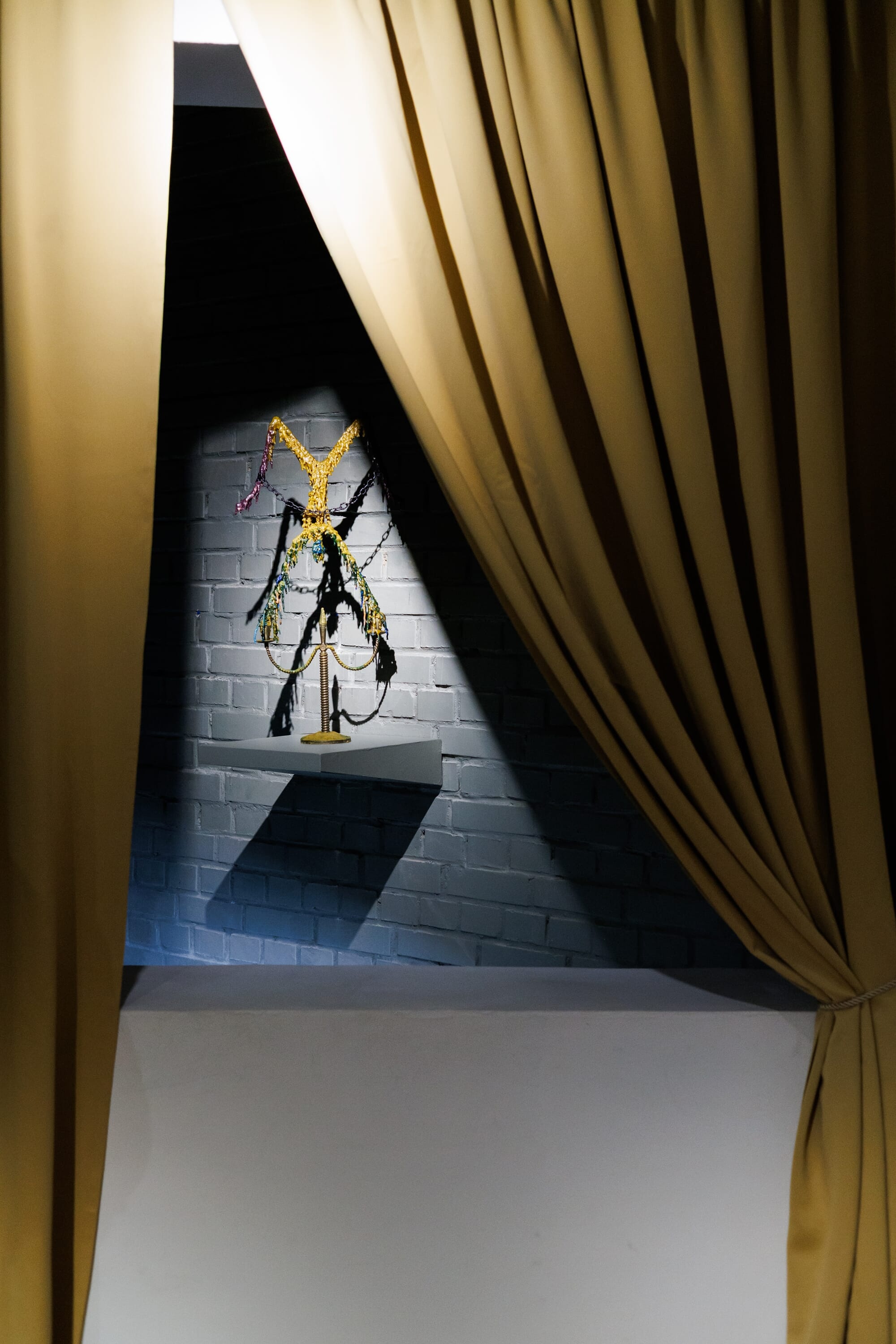 Экспозиция превращается в метафорическую сцену. Хрупкие восковые скульптуры и рельефы Гриши, пластические композиции Сидура — каждый предмет искусства, сохраняя свою сущность, обретает черты персонажа несыгранного спектакля. Произведения Михаила Шемякина, Мая Митурича-Хлебникова и Вадима Захарова из коллекции Московского музея современного искусства становятся сценографическими ориентирами. Они задают мотивы света и тени, направляя взгляд в глубину этой иллюзорной постановки.