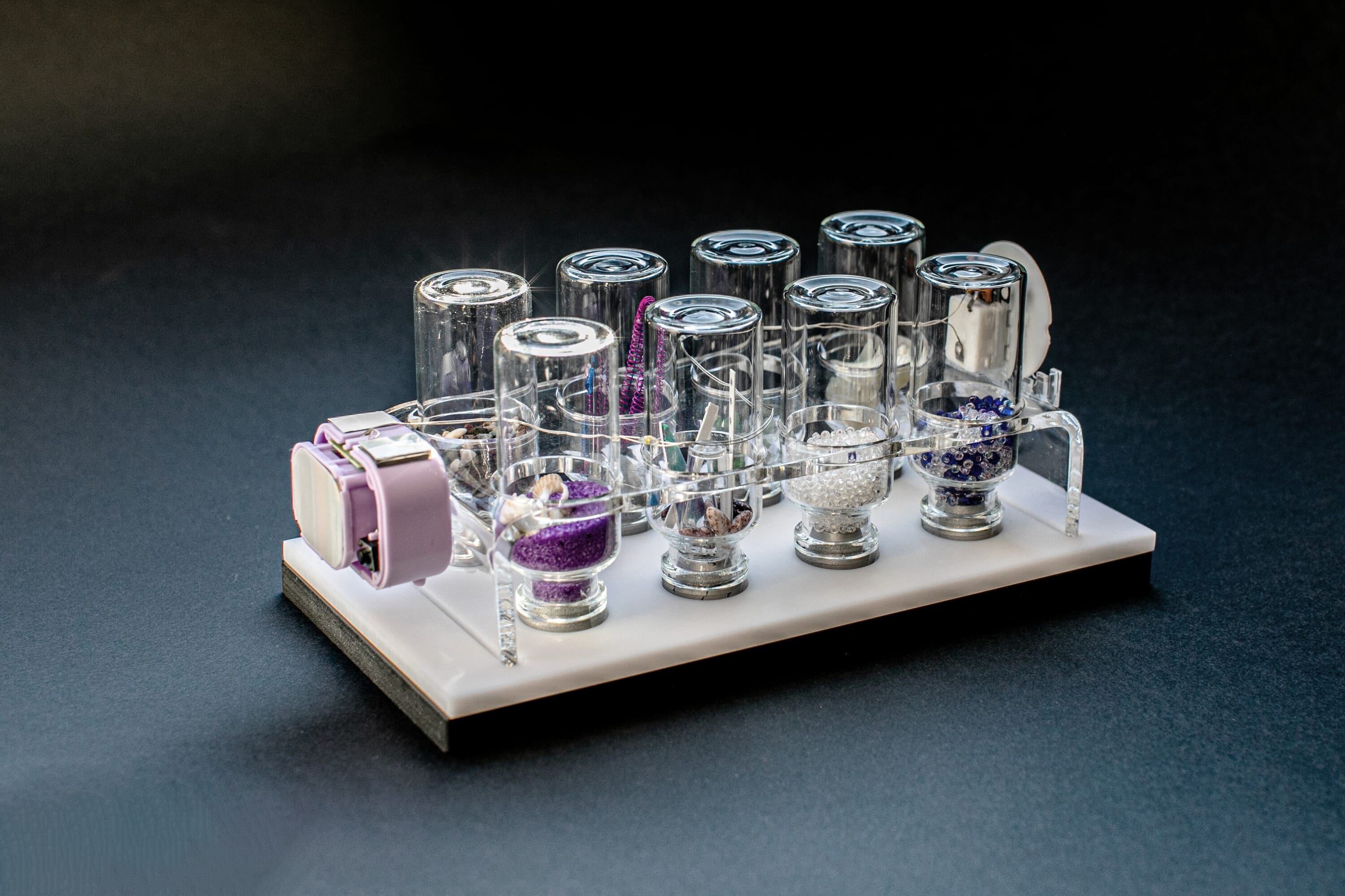 Из воображаемой экспедиции художница «привозит» артефакты: образцы инопланетной флоры, фрагменты биомов, модели устройств высокоразвитых цивилизаций. Скульптуры из стекла и найденных объектов напоминают музейные экспонаты или лабораторные образцы. «Эти объекты — символы сверхспособностей, о которых люди давно мечтают, как например машина времени, генератор гиперпространства, телепортатор, антенна для инсайтов, биокреатор и другие», — говорит художница. Не столько приборы, сколько метафоры вечного человеческого стремления превзойти физические ограничения.