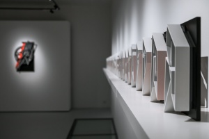 Развивая концепцию формы, Petro придал своим оригинальным графическим изображениям архитектурный объём: фанерные элементы вырезаются лазером, склеиваются, шлифуются, затем выкрашиваются и собираются воедино. Форма букв является определяющей для всего ритма, выверенность линий позволяет детально изучить процесс архитектурного проектирования, строгости добавляет сочетание локальных цветов – красного, белого и черного. Отсылка к знаковым цветам русского авангарда, прямого источника вдохновения Petro, лежит в основе всего творчества художника.