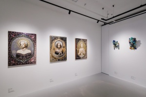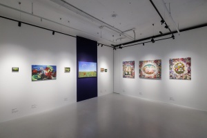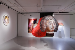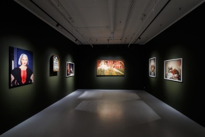 Выставка объединяет несколько полифонических уровней, каждый из которых описывается одним из расхожих китчевых сюжетов. Среди них – райская жизнь, раскрывающаяся в близости природе, культ селебрити и стандарты телесной и духовной красоты, высокая культура и ее эстетический канон.